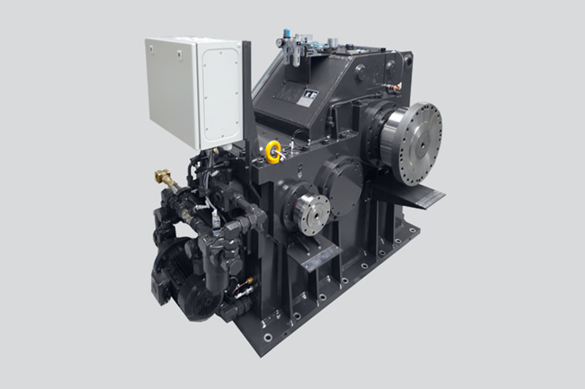 Das Institut entschied sich für den Prüfstand eines österreichischen Herstellers mit Getriebetechnologie von RSGetriebe – einen Front-Rear-Aufbau mit insgesamt vier Getrieben. Zwei feste Übersetzungen und zwei Schaltgetriebe realisieren Leistungen von bis zu 72.000 Nm. Die Getriebe bieten durch ihre Schaltstufen ein variables Prüfkonzept und sind durch ihr breites Drehmoment- / Drehzahlspektrum einzigartig universell einsetzbar.